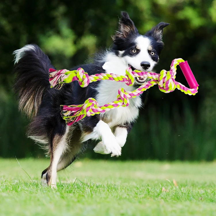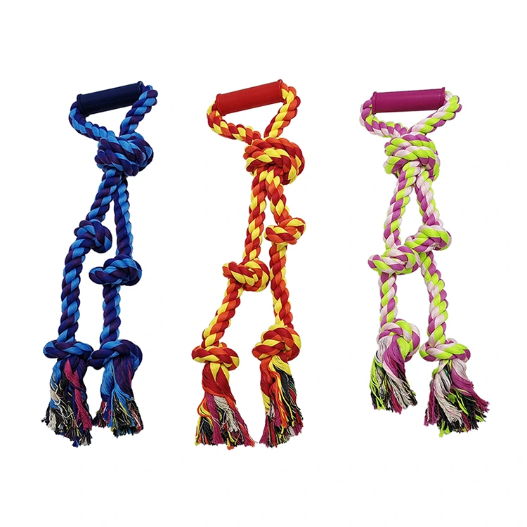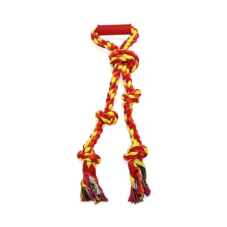 Gebruik Hello-Pet Twisted Rope 5 Knot Tug Dog Toy voor Tug of War Competition! Wanneer honden kauwen en spelen, zullen de touwvezels tandfloss gebruiken om hun tanden schoon te maken. Veilig en duurzaam, zeer geschikt voor gaming, ophalen en spelen. Duurzaam en stevig, het kan uren kauwen en spelen, waardoor het perfect is voor kleine honden met lange tanden. Dit speelgoed is zeer geschikt voor interactieve games en heeft een perfect ontwerp dat maximale participatie kan bereiken. Bovendien helpen getextureerde touwen de gezondheid van tanden en tandvlees te bevorderen.